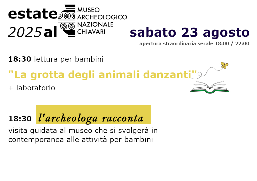 Doppio appuntamento alle 18:30: mentre i bambini avranno un laboratorio letterario tutto per loro, gli adulti potranno partecipare alla visita guidata da un'archeologa professionista.